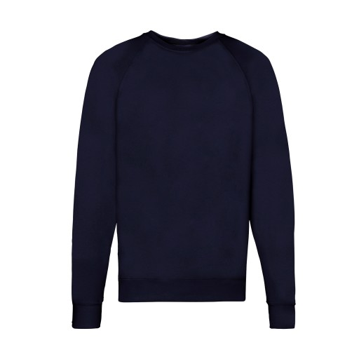 Bluzy męskie Lightweight Raglan Sweat Fruit Of The Loom z lekkiego materiału 240g. Rękawy typu raglan (przeszycie). Ściągacze przy mankietach, dekolcie i w pasie z prążkowanej taśmy bawełnianej z dodatkiem Lycry. Wykonane z miękkiej w dotyku przędzy Belcoro.