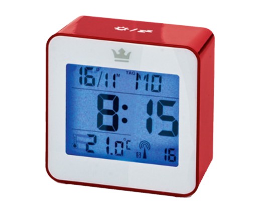 Budzik firmy Sampre został wyposażony w automatyczne radiowe ustawianie daty oraz czasu (DCF).