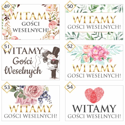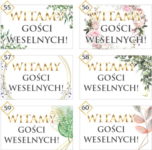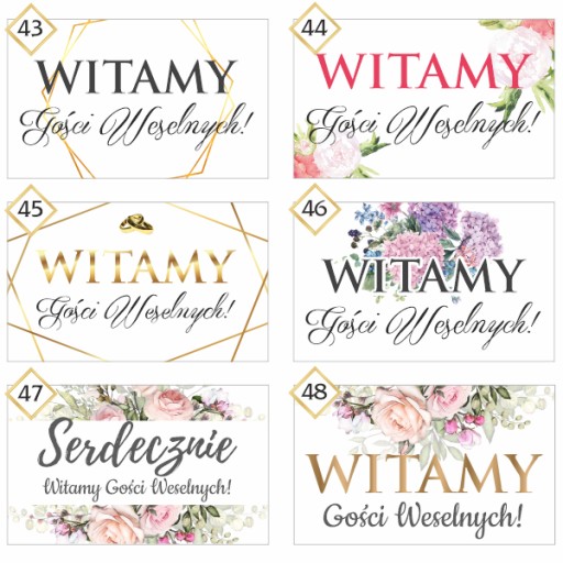 Plakaty na Powitanie Gości weselnych. Druk wykonany cyfrowo na papierze kreda 300 g, dlatego też druk nie rozmywa się nawet przy największej ulewie. Wymiar plakatu: 33 x 54 cm. W każdym wzorze jest możliwość zmiany czcionki, dodanie indywidualnego napisu, zmiany koloru czcionki. Jeśli posiadają Państwo Własny projekt chętnie go dla Państwa wydrukujemy nie wpływa to na dodatkowe koszty. Możemy przygotować indywidualny projekt który jest GRATISOWY. W razie jakichkolwiek pytań, proszę pisać. PODANA CENA DOTYCZY 1 SZT.