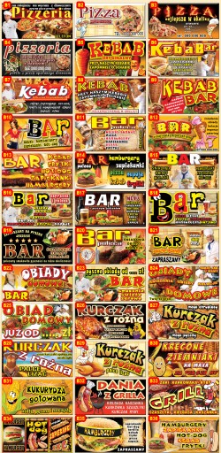 BANERY REKLAMOWE o wymiarze 200x100 cm wraz z GOTOWYMI WZORAMI O RÓŻNEJ TEMATYCE.