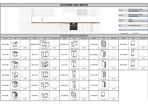 Możliwość skonfigurowania kuchni według własnego gustu i preferencji. Tabela poniżej przedstawia dostępne szafki oraz ich wymiary.