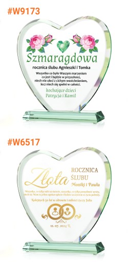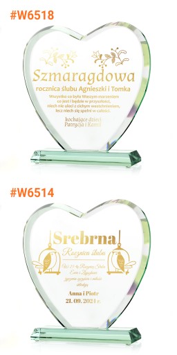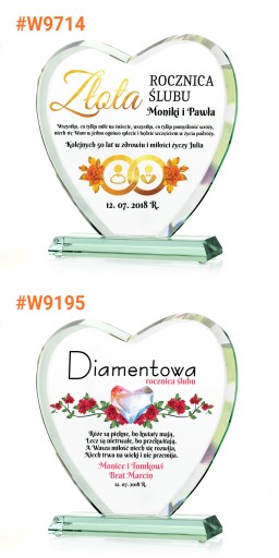 Ekskluzywny prezent z okazji 25 rocznicy ślubu, statuetka w kształcie serca wykonana z najwyższej jakości szkła. Bezpośrednio na niej zostanie umieszczony złoty grawer, w postaci ozdobnego wzoru srebrna rocznica ślubu, imion małżonków oraz wasz podpis data. Tego typu prezent, z pewnością zrobi ogromne wrażenie na każdym.