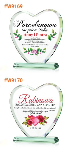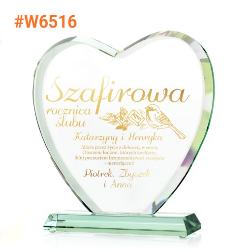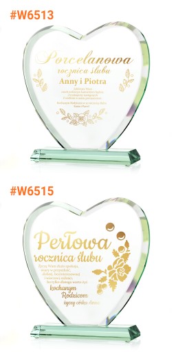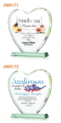 Szklana statuetka serce z grawerem na prezent na 25 rocznicę ślubu