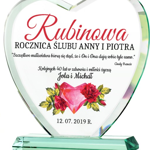 Szklana statuetka serce z grawerem na prezent na 60 rocznicę ślubu