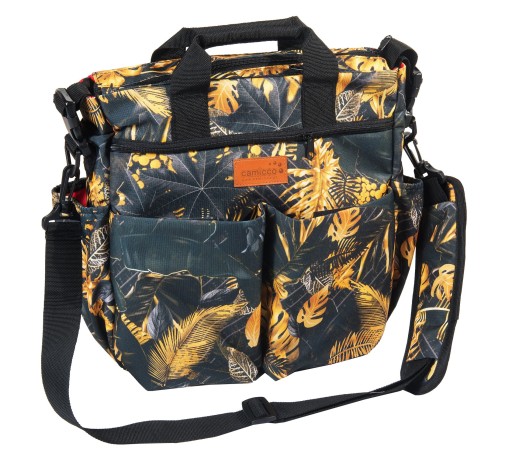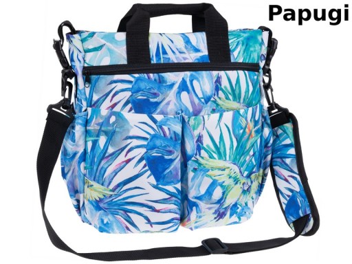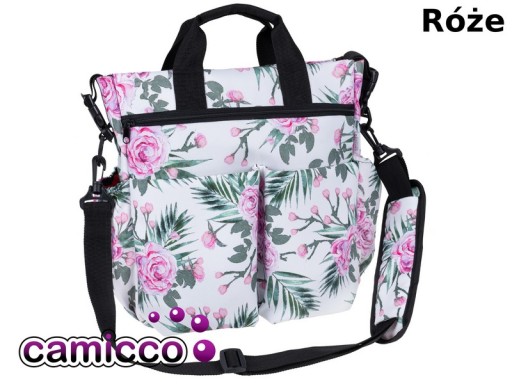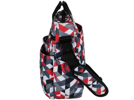 Torbę można nosić na ramieniu (posiada długi regulowany pasek) lub w ręku dzięki krótkim rączkom bądź powiesić na wózku dzięki specjalnym zaczepom przy torbie