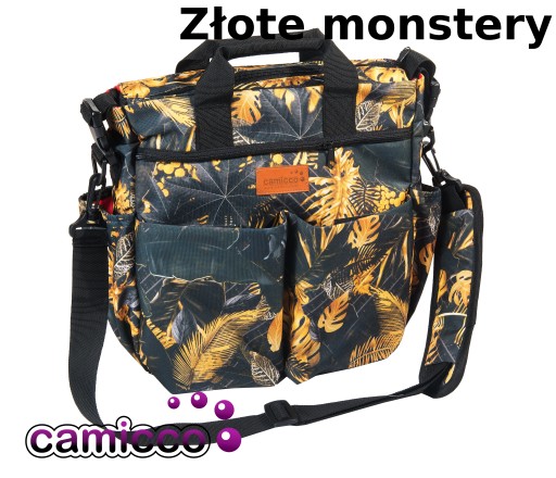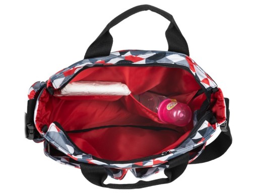Torba ma dużo kieszeni oraz przegródek. Pomieści wszystkie niezbędne rzeczy jak środki pielęgnacyjne, jedzenie, zabawki i rzeczy dla mamy. Główna komora torby jest zasuwana na zamek - w środku znajdują się dwie mniejsze kieszenie oraz kieszonka zapinana na suwak. Na przednim panelu umieszczono 2 duże kieszenie na rzep na podręczne rzeczy plus duża przegródka zapinana na zamek. Ponadto torba ma dwie kieszenie na butelki wszyte w boki, tył torby posiada jedna dużą przegródkę
