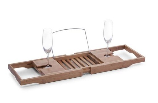 Półka wyposażona została w dwa stabilne miejsca na kieliszek, a jeśli tak się zdarzy, że akurat spędzasz w wannie czas samotnie, to możesz skorzystać z chromowanej podstawki pod książkę lub tablet.