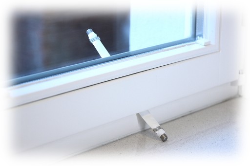 Przejście okienne pozwalające na przepuszczenie przewodu przez ramę okienną bez konieczności wiercenia otworu.
