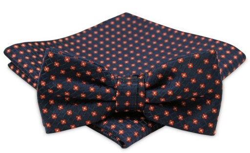 Modna Mucha Męska - Alties - Granat w Pomarańczowe Akcenty