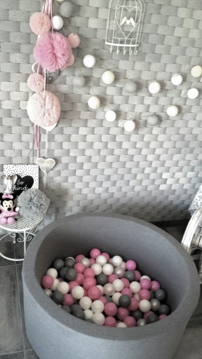 W zestawie 300 SZTUK szt piłeczek o średnicy 7cm wytworzonych z nietoksycznego materiału.