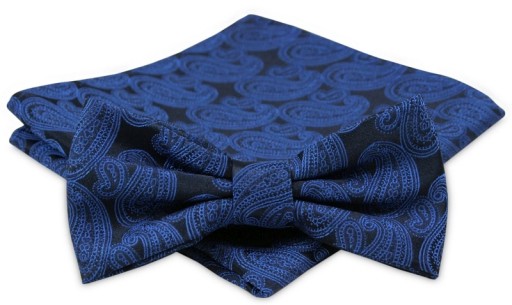 Modna Mucha Męska - Alties - Granat z Niebieskim Wzorem Paisley