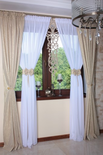 Podana cena 145 zł dotyczy 1 sztuki zasłony w kolorze złotym ( bez magnesu spinającego zasłonę)