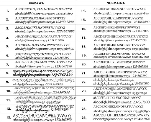 Poniżej duży wybór symboli, które możemy wygrawerować i zamieścić na naklejce, także wybór czcionki jaką mamy wygrawerować zyczenia, dedykację lub napis.