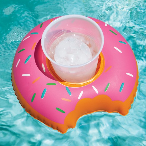ZABAWNY GADŻET - pływający, dmuchany donut na napoje będzie świetną ozdobą każdej imprezy. Nadaje się również do zabawy w kąpieli.