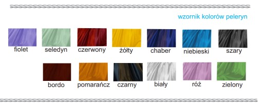 Możliwość zakupu pelerynki w jednym z wielu dostępnych kolorów. Całość obszyta lamówką w kontrastowym odcieniu.