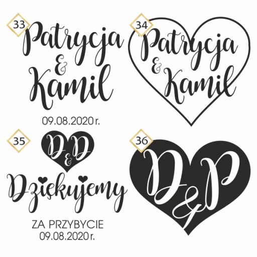 Uwag dodatkowych Np.: ( Ania i Marcin, 15 sierpnia 2023 r. wzór: 1, Proszę zmienić czcionkę ze wzoru numer 1 na wzór numer 26, tusz: czerwony)