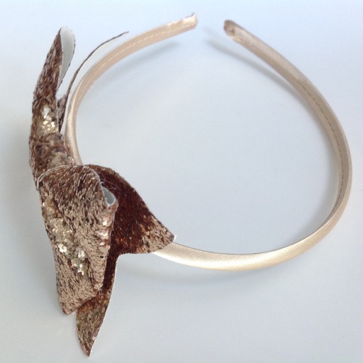 Przedmiotem sprzedaży jest opaska z brokatową kokardą jasno złotą,