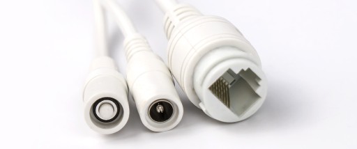 W zestawie znajdują się dwa wtyki oraz zabezpieczenie przed ich wyrwaniem czy zamoczeniem. Ponadto kamera posiada wyjście na zasilacz o mocy 12V.