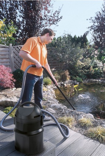Odkurzacz do pracy na sucho i mokro firmy Pontec jest bardzo łatwy w użyciu. Po prostu podłącz do prądu i użyj węża ssącego i dyszy do zassania grubszego brudu ze stawu lub basenu. Możesz użyć PondoMatic, aby na przykład usunąć glony lub błoto. W przypadku glonów na powierzchni zaleca się nie zanurzać rury ssącej całkowicie w wodzie, a jedynie poprowadzić ją po powierzchni wody.