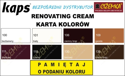 A)Wyroby skórzane: Obuwie oraz galanteria skórzana (skóra naturalna gładka, licowa) - oczyścić powierzchnię z zabrudzenia i kurzu. Nasączyć szmatkę środkiem KAPS CONDITIONER przetrzeć powierzchnię skóry aby usunąć pozostałości pasty lub innych preparatów.