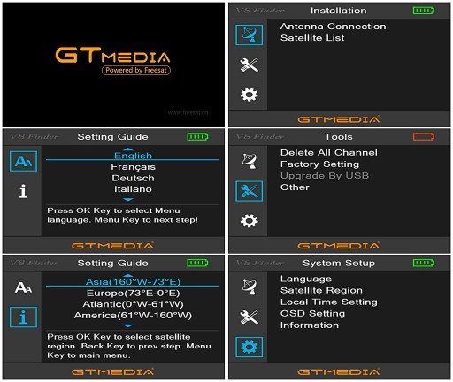 Miernik Freesat V8 służy do pomiaru sygnału satelitarnego DVB-S/S2/S2X, H.265. Posiada wbudowany kolorowy wyświetlacz LCD o przekątnej 3,5 cala (8,9 cm), który ułatwia pracę przy słabym oświetleniu i umożliwia podgląd kanałów niekodowanych.