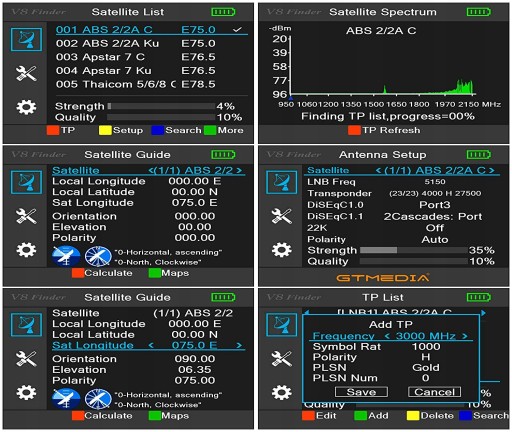 Miernik Freesat V8 służy do pomiaru sygnału satelitarnego DVB-S/S2/S2X, H.265. Posiada wbudowany kolorowy wyświetlacz LCD o przekątnej 3,5 cala (8,9 cm), który ułatwia pracę przy słabym oświetleniu i umożliwia podgląd kanałów niekodowanych.