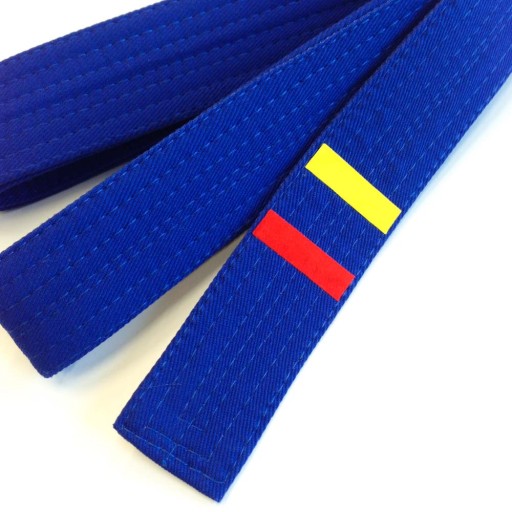 Każda belka wykonana jest z materiału przypominającego w dotyku zamsz. Kolory są odpowiednio dobrane - mocno nasycone i świetnie kontrastują z kolorem pasa oraz są doskonale widoczne. Specjalna, super cienka warstwa kleju na spodzie aktywuje się pod wpływem ciepła i wnika w bawełnę. Belka trzyma się pasa w sposób absolutnie trwały, nie pozwalający na jej zerwanie nawet nożem! Na pewno nie odklei się na treningach czy podczas prania!