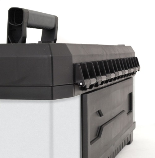- Duża wysokość skrzynki zapewnia obszerną przestrzeń magazynową na narzędzia