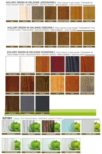 - skrzydło drzwi jest bezsęczne, naturalna sosna, jesion lub dąb