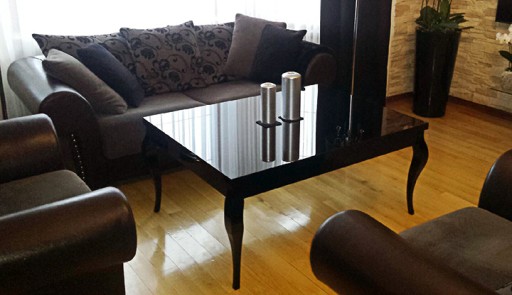 - nogi z litego drewna lakierowane na wysoki połysk.