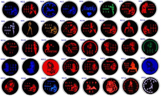 Przykładowe wzory są ponumerowane i są niewielką częścią jaką posiadamy do pokazania , na podstawie tych przykładów możemy wstawić twoje napisy np imię ,nick , zmieniać układy biegów dowolnie