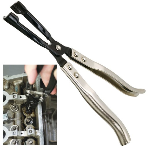 - Specjalnie wydłużone i zwężone szczypce umożliwiają szybki i bezpieczny demontaż uszczelniaczy zaworów nawet w silnikach posiadających 4 zawory na cylinder.