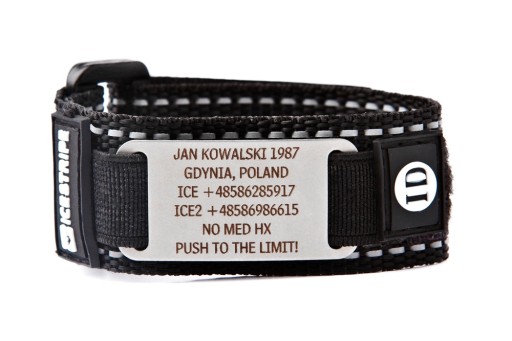Na opasce ICEstripe Sport masz do dyspozycji 6 linijek tekstu, w których możesz zamieścić najważniejsze informacje o swojej osobie. Dane zostaną wygrawerowane laserowo na identyfikatorze ze stali nierdzewnej.