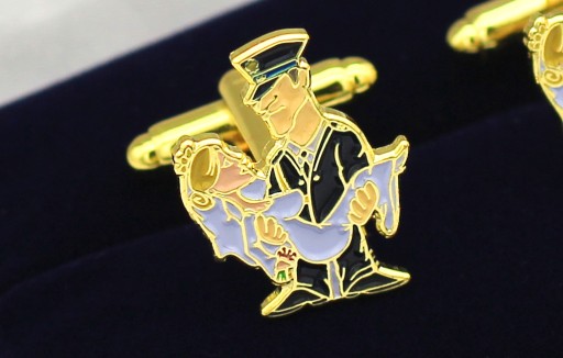 Запонки ПОЖАРНЫЙ СВАДЬБА + сапфировый футляр