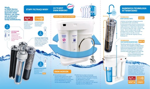 - DWAY - Double Way - unikalna technologia podwójnej mineralizacji wody stosowana w systemie DWM Morion. Oczyszczona woda, współdziałając bezpośrednio z subkrystalicznym złożem dolomitowym, znajdującym się we wkładzie K7M zostaje wzbogacona w minerały takie jak: wapń, magnez, sód i potas. Taka woda nie tylko wywiera korzystny wpływ na nasz organizm, ale również reguluje procesy fizjologiczne.