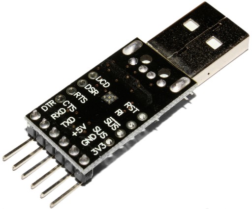 - Wyprowadzenia sygnałów DTR / Rx / Tx / +5V / GND / +3,3V na złączu Goldpin (R=2,54)