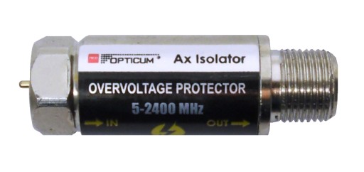 Zabezpieczenie przeciwprzepięciowe zabezpiecza przed przepięciem w przewodzie antenowym powstałym w skutek uderzenia pioruna lub wyładowań atmosferycznych w pobliżu instalacji antenowej telewizji naziemnej DVB-T / satelitarnej DVB-S.