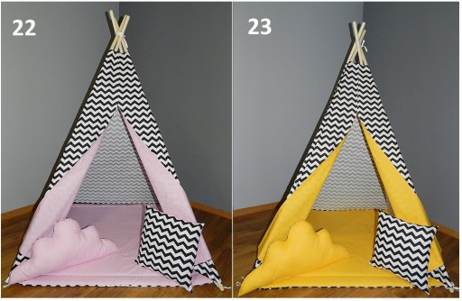 W zestawie : namiot + mata + kijki + 2x podusia ( kwadratowa 40x40cm + chmurka 50x30cm )
