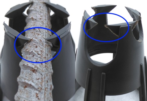 - Zatrzaski na pręt zbrojeniowy zapobiegające jego wysunięciu