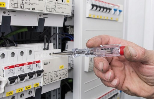 Próbnik napięcia wykorzystywany do badania przepływu prądu. Zabezpieczony przed porażeniem prądem.