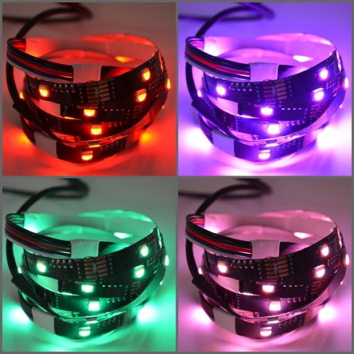 Dzięki wbudowanemu sterownikowi można wybrać kolor świecenia, program zmian kolorów, sterować jasnością oświetlenia oraz włączyć lub wyłączyć taśmę LED.