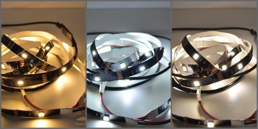 ✅ Rodzaj taśmy: Taśma elastyczna LED RGBW (wielokolorowa + biała ciepła) SMD5050 IP33 na czarnym podłożu