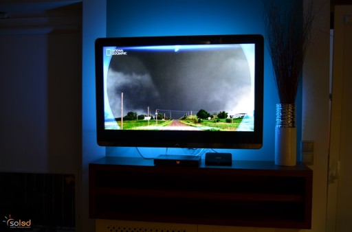 Zestaw oświetlenia telewizora pozwoli na uzyskanie ciekawej i dekoracyjnej łuny świetlnej wokół TV.