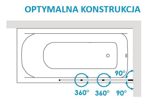 Optymalne zawiasy o zakresie regulacji 180 lub 360 stopni, pozwalają dowolnie składać parawan na ścianę, dzięki czemu idealnie sprawdzą się również w niewielkich łazienkach, gdzie często poszczególne elementy wyposażenia są bardzo blisko siebie, co utrudnia swobodne składanie parawanu w jednym kierunku.