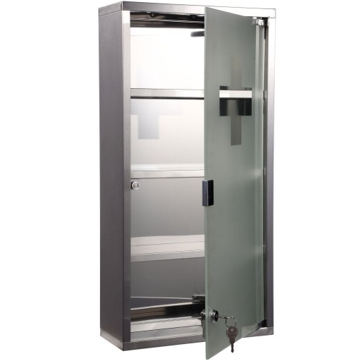 Przedstawiamy Państwu szafkę na leki o wysokiej jakości stali szlachetnej nierdzewnej. Elegancki styl i uniwersalny kolor sprawiają, że szafka świetnie pasuje do każdego wnętrza. Apteczkę można zamknąć na kluczyk i tym samym chronić leki przed dostępem dzieci lub osób nieupoważnionych. Szafka medyczna jest oznaczona krzyżem na szybie, aby mogła być od razu rozpoznana jako apteczka.