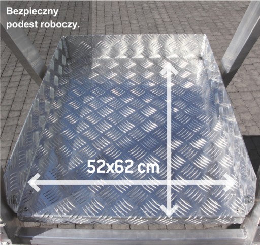 - Platforma robocza 52×62 cm z bortnicami i barierkami zabezpieczającymi,
