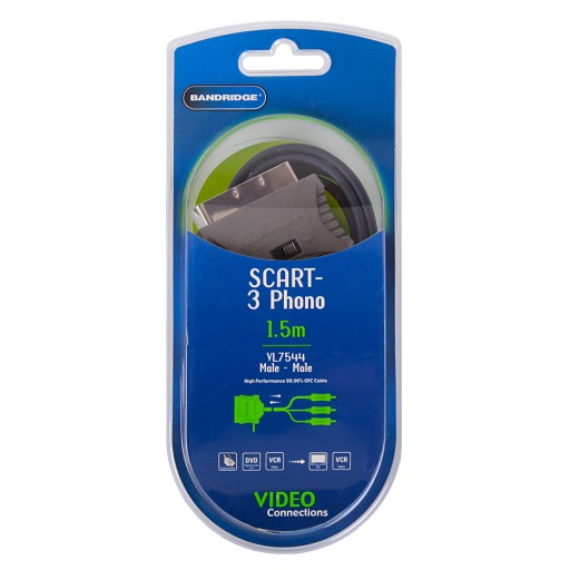 Kabel Video 3 x RCA - 1 x SCART 1.5m Bandridge VL-7544