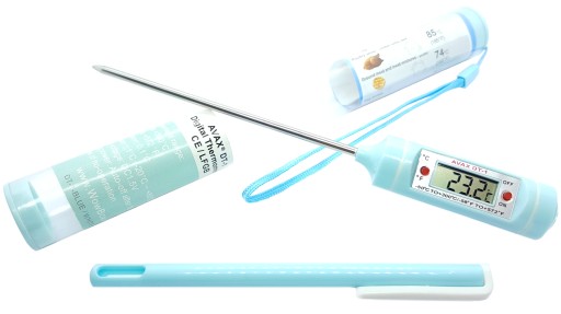 Termometr cyfrowy LCD AVAX™ DT-1 ze zintegrowaną sondą wykonaną z ze stali nierdzewnej. Przeznaczony do kontroli temperatury żywności oraz płynów. Pomiar wyświetlany jest na panelu LCD w zakresie od -50°C do 300°C (-58°F - 572°F ) Zaostrzona sonda umożliwia penetrację mierzonego produktu. Duża wytrzymałość sondy na zginanie pozwala na stosowanie urządzenia do pomiarów temperatury produktów zamrożonych.