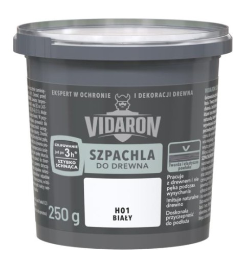 VIDARON SZPACHLA DO DREWNA to wysokiej jakości akrylowa szpachla do drewna. Zawiera terpentynę, która decyduje o bardzo dobrej przyczepności masy szpachlowej do drewna, a specjalnie przygotowana mączka kwarcowa nadaje jej odpowiednią twardość i ułatwia dalszą obróbkę. Nie pęka podczas wysychania, łatwo się szlifuje i poleruje.