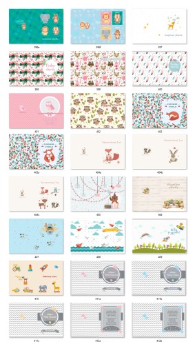 W ofercie znajdują się przeróżne wzory - uniwersalne,dziecięce,rodzinne dzień matk.